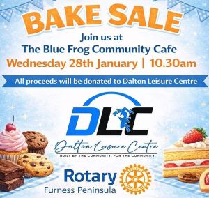 We’re delighted to welcome the Rotary Club of Furness Peninsula to The Blue Frog Community Café for a Bake Sale in support of Dalton Leisure Centre.