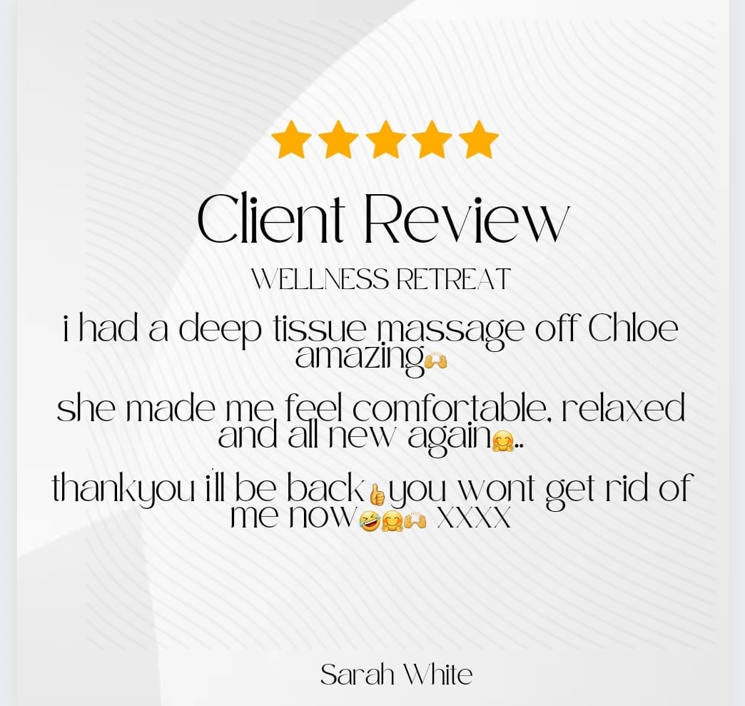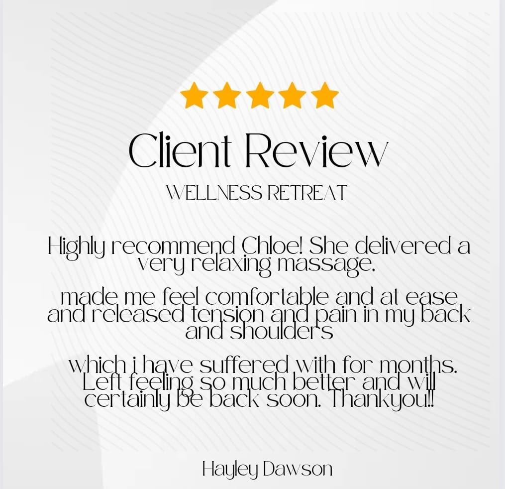 At Wellness Retreat you're treated differently: Chloe tailors treatments to meet your needs, and believes everyone deserves to feel good. She is committed to providing her clients with the highest quality of flexible care which is just one of the reasons why she takes pleasure in helping those suffering from life-limiting conditions like Fibromyalgia and Cerebral Palsy.